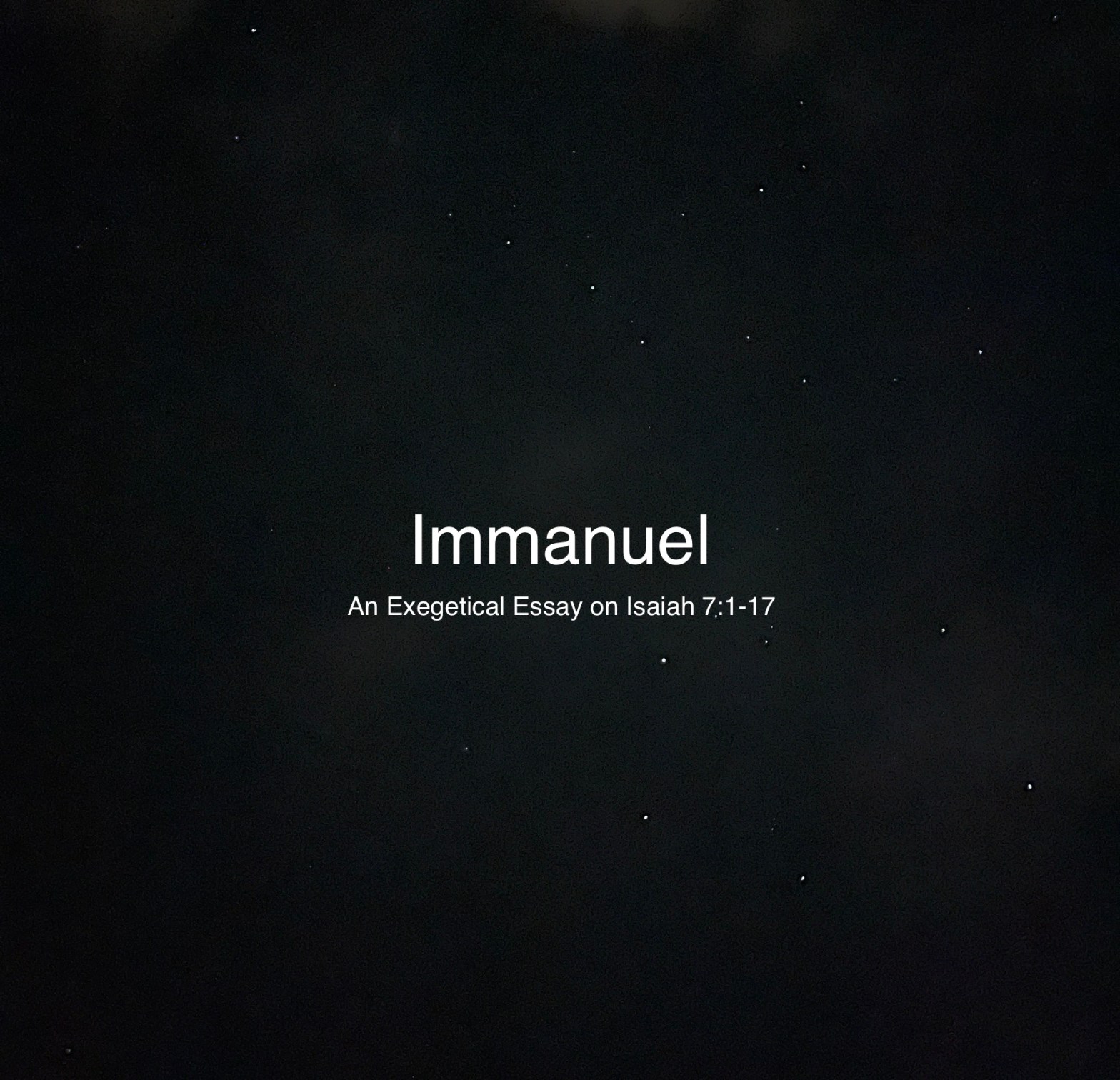 An Exegetical Essay on Isaiah 7:1-17 Introduction This essay is an exegetical study of Isaiah 7:1-17. The linear flow of this passage is essential, and therefore this essay will largely follow it, exegeting verse by verse. An extensive amount of time will be devoted to the identity and meaning of the Immanuel child, as ImmanuelContinue reading “Immanuel”